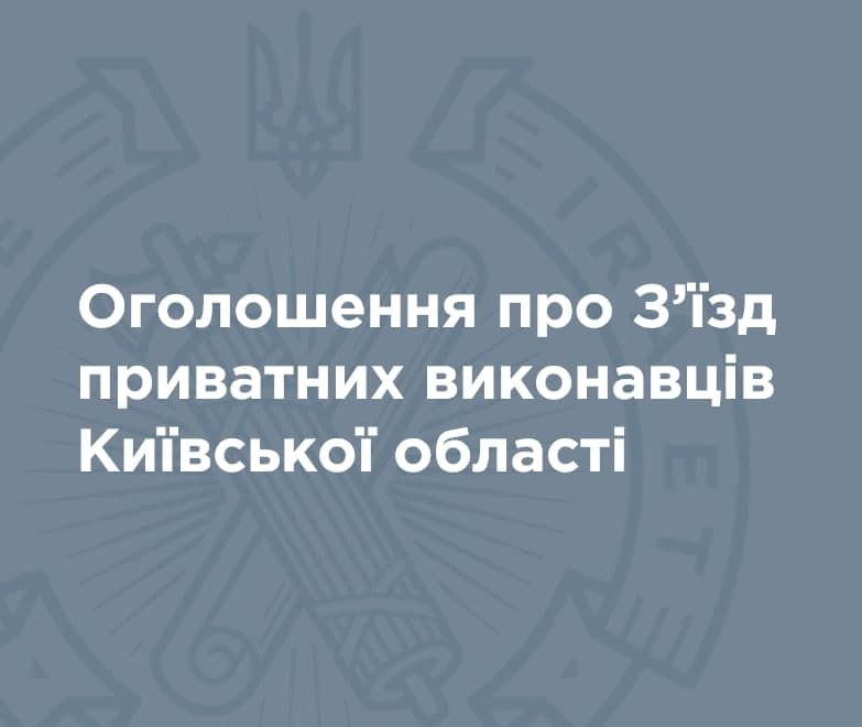 Оголошується З’їзд приватних виконавців Київської області, який відбудеться 22 жовтня 2021 року о 09:00 за адресою: Київська обл., м. Ірпінь, вул. Соборна, 193, оф. 7.
