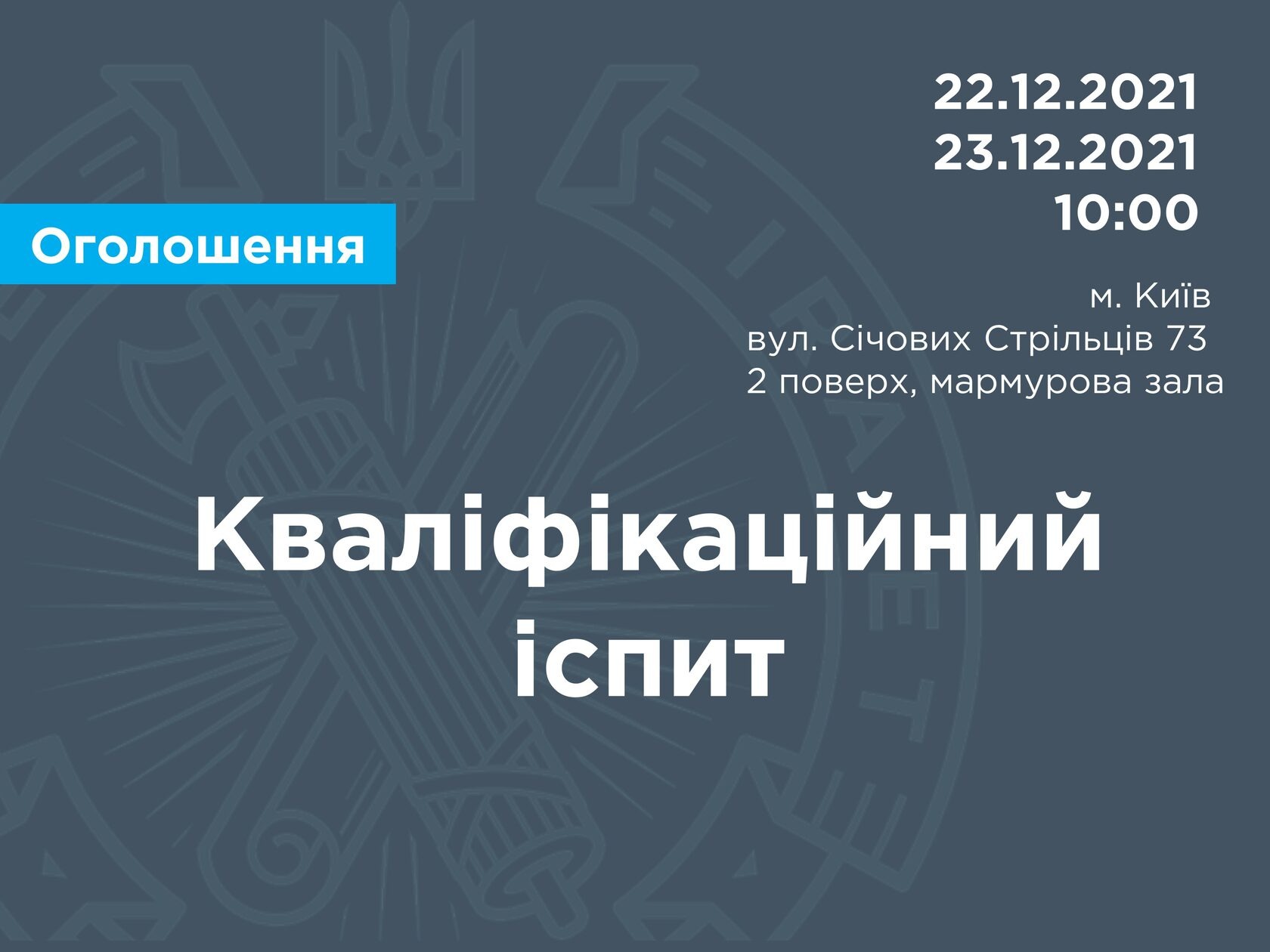 Дата і час проведення іспитів – 22.12.2021 та 23.12.2021,