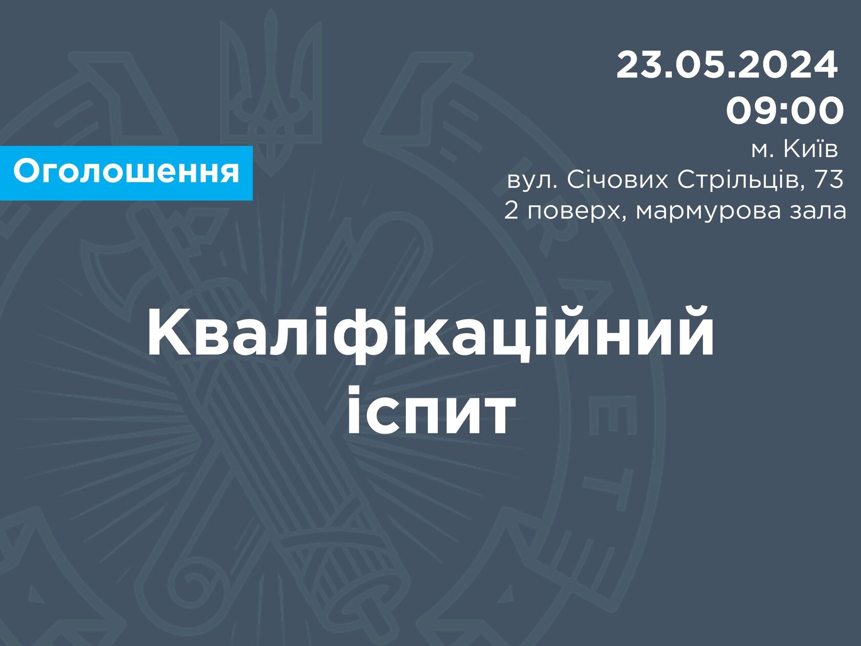 Дата і час проведення іспиту – 23.05.2024, початок іспиту о 9 год. 00 хв.