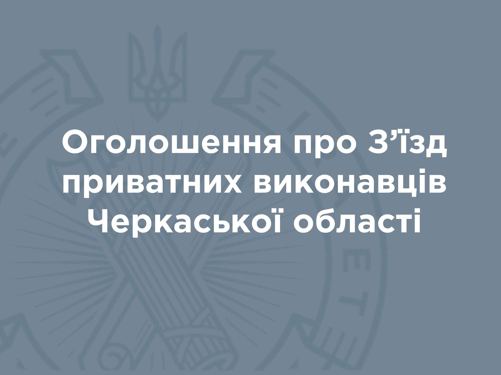 Черговий З’їзд приватних виконавців Черкаської області відбудеться 20.05.2024 об 11:00 год. за адресою: м. Черкаси, вул. Вишневецького Байди, 47, офіс 310/1.