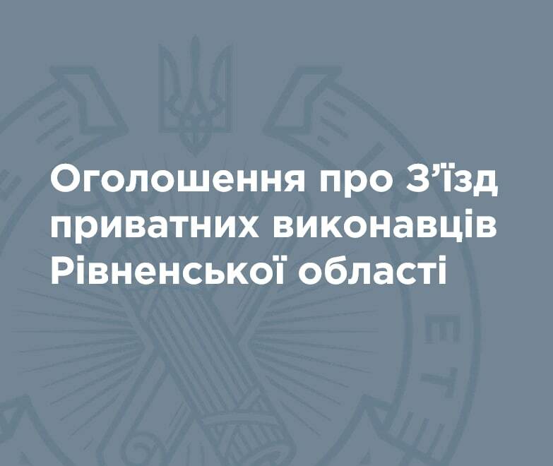 З’їзд приватних виконавців виконавчого округу Рівненської області відповідно до рішення Ради приватних виконавців регіону відбудеться 13 жовтня 2025 року за адресою: м. Рівне, вул. Соборна, 370 В.