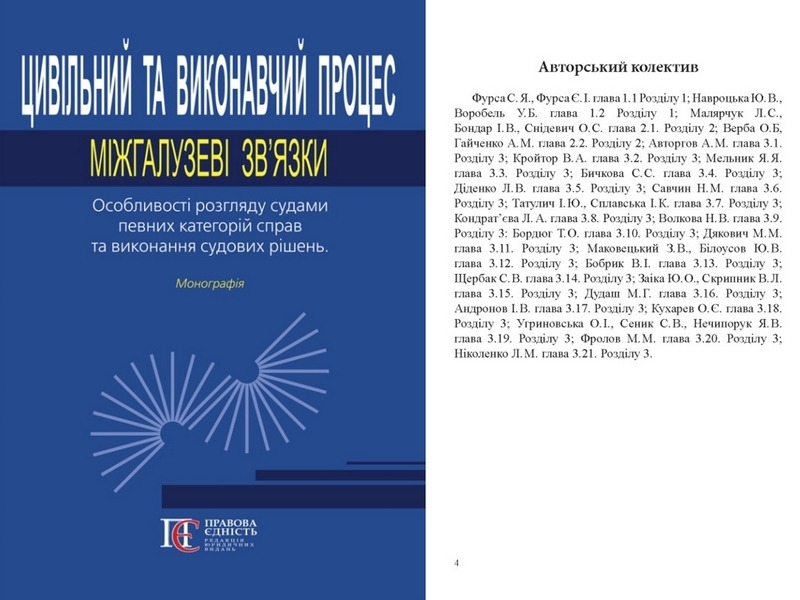 В світ вийшла Монографія «Цивільний та виконавчий процес. Міжгалузеві зв’язки. Особливості розгляду судами певних категорій справ та виконання судових рішень»!