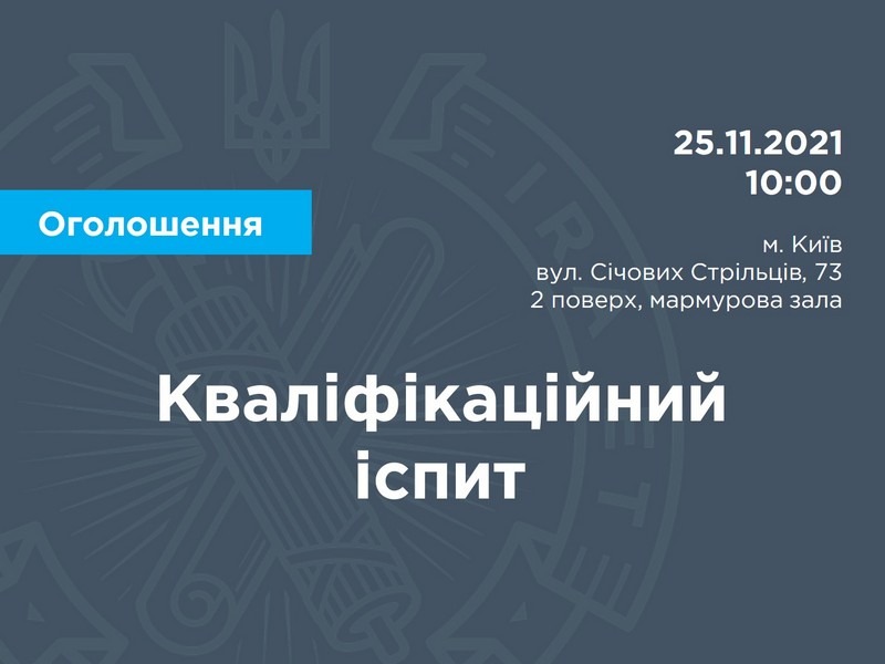 Дата і час проведення іспиту – 25.11.2021, початок іспиту о 10 год. 00 хв.