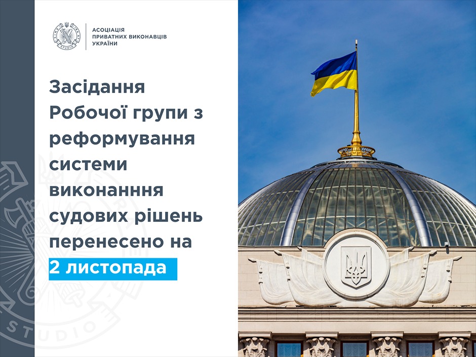 Інформуємо! Сьогодні, 19 жовтня, мало відбутись чергове засідання Робочої групи щодо реформування системи виконання судових рішень. Але на прохання голови Групи, народного депутата Валерія Божика воно переноситься на 2 листопада.