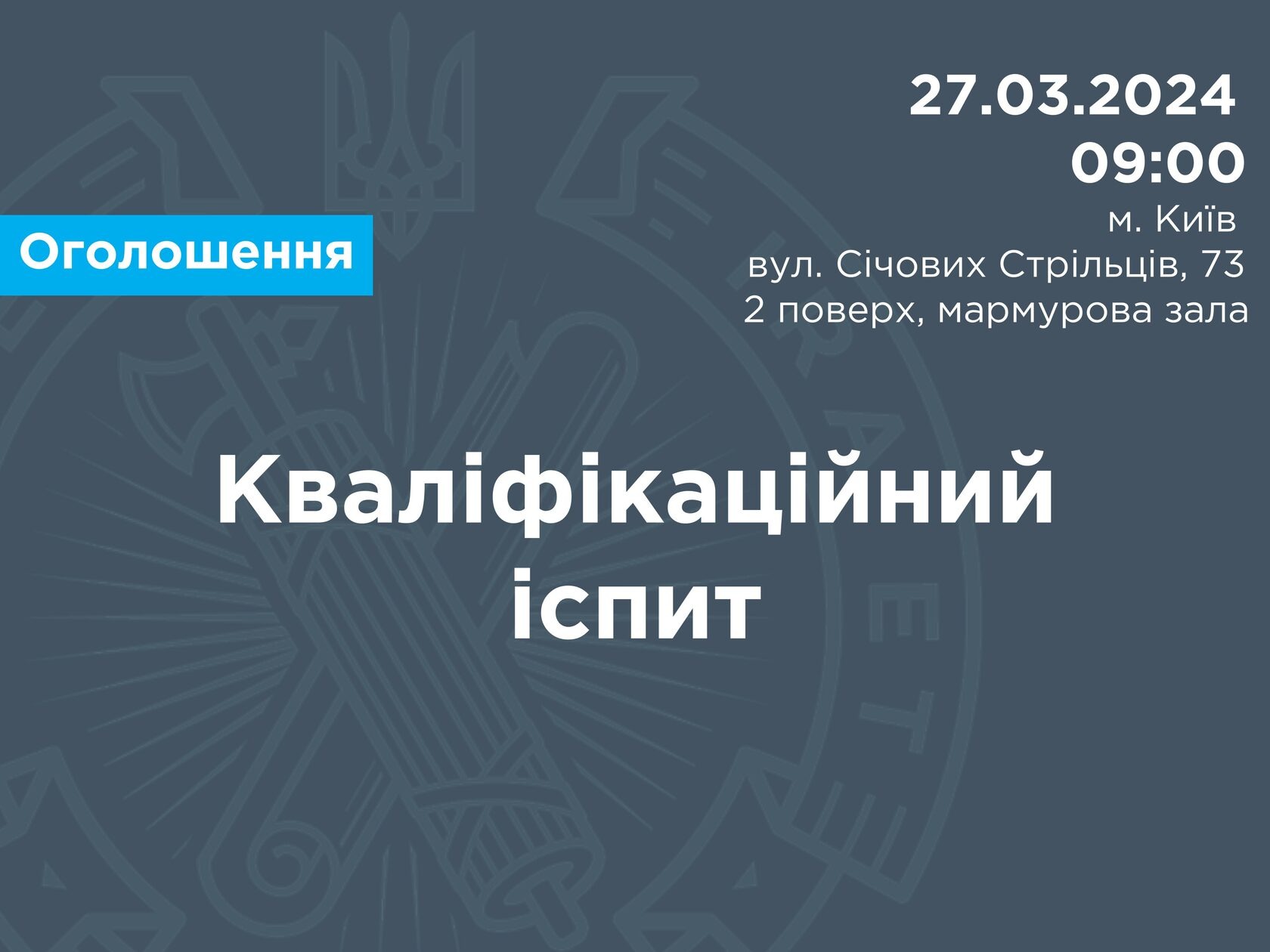 Дата і час проведення іспиту – 27.03.2024, початок іспиту о 9 год. 00 хв.