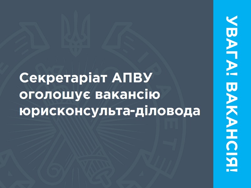 Асоціація приватних виконавців України оголошує вакансію юрисконсульта-діловода.