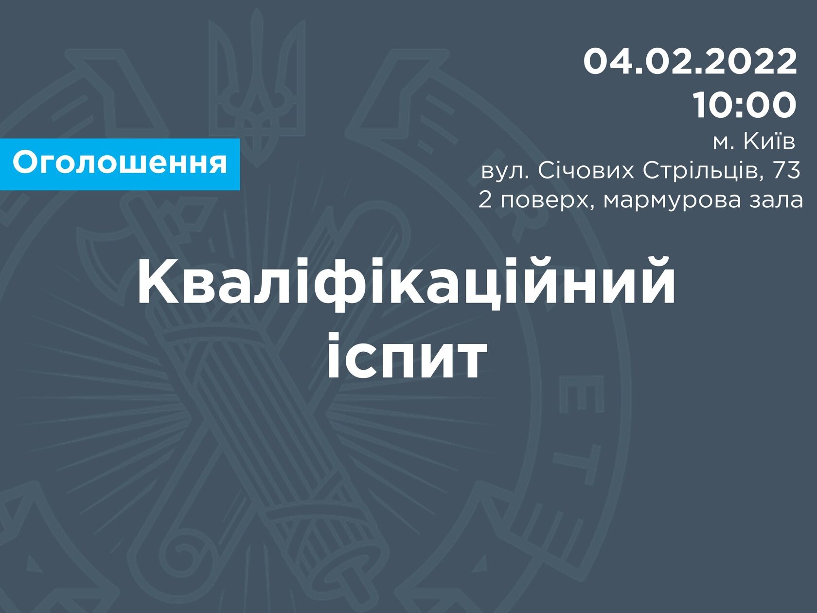 Дата і час проведення іспиту – 04.02.2022, початок іспиту о 10 год. 00 хв.