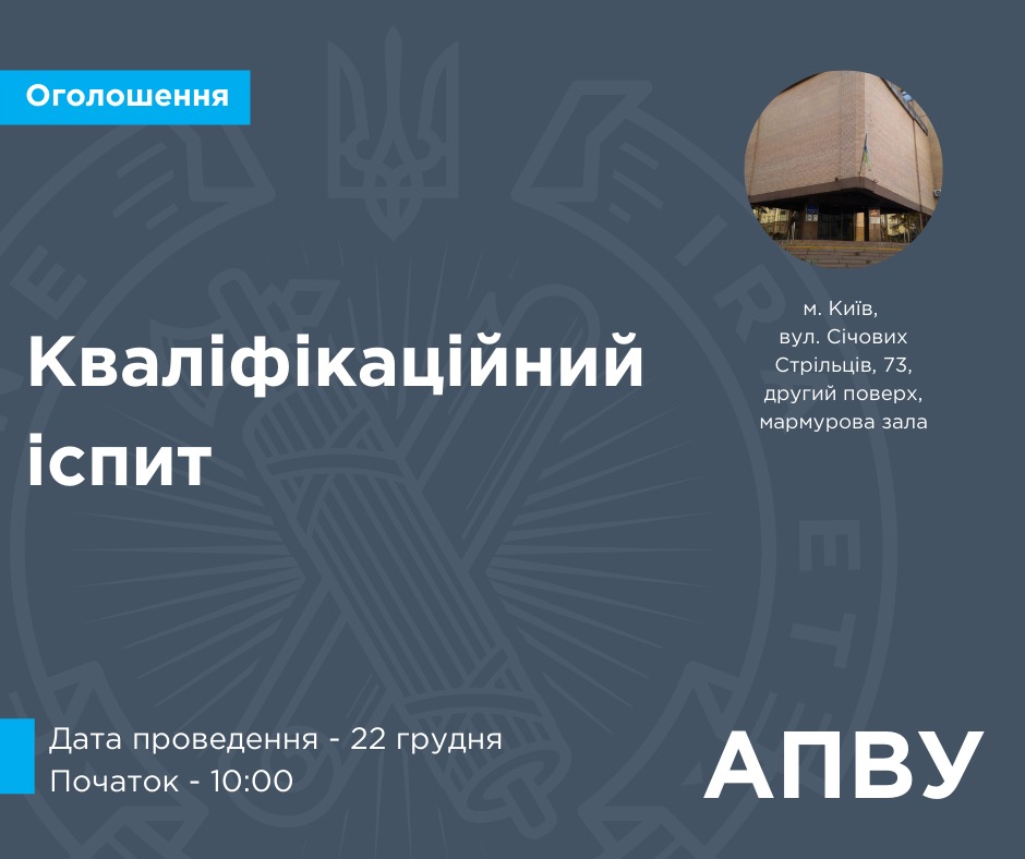 У відповідності до вимог ч. 2 ст. 21 Закону України «Про органи та осіб, які здійснюють примусове виконання судових рішень і рішень інших органів» та згідно протоколу засідання Кваліфікаційної комісії приватних виконавців від 08.12.2020 № 77 повідомляються особи, допущені до складення кваліфікаційного іспиту про дату та місце його проведення.